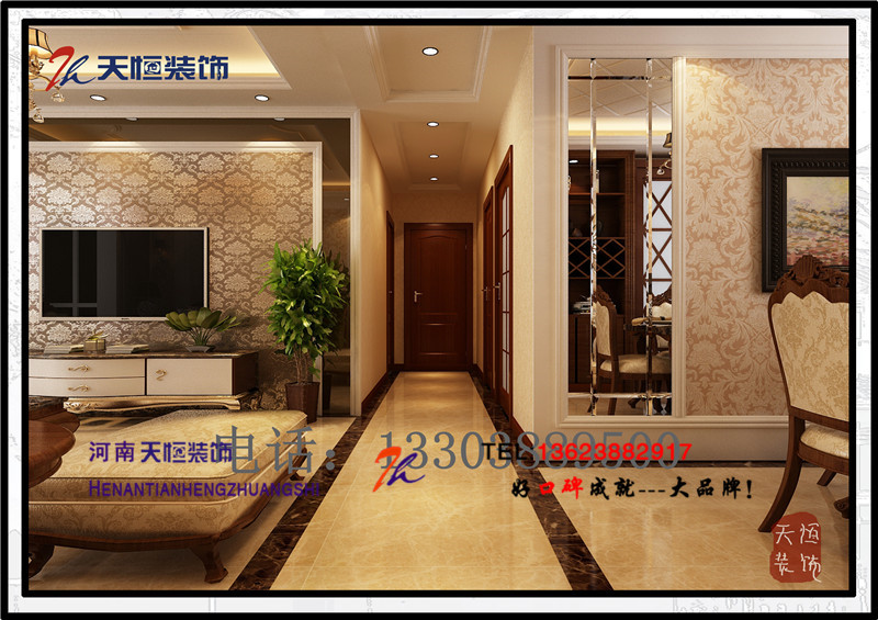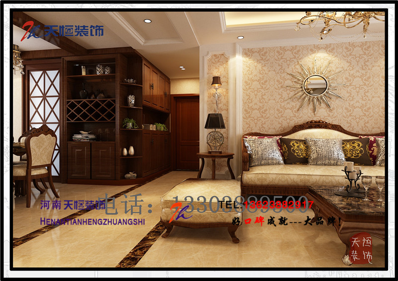洛陽天恒裝飾工程有限公司設計裝修效果圖,小區(qū)案例為洛陽恒泰春天小區(qū),設計師是洛陽最好的家裝設計師王婧,裝修風格為歐式風格。